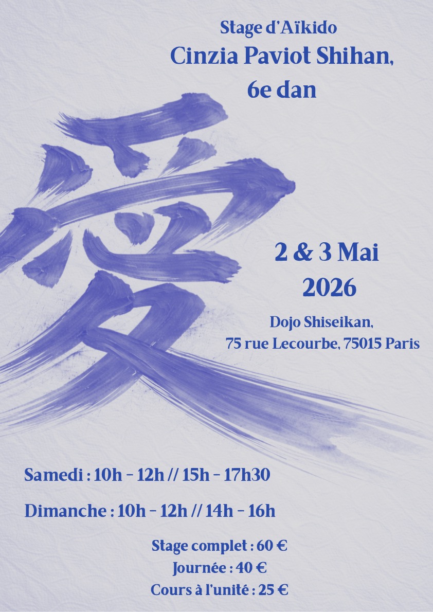 Dojo Shiseikan 5 Rue Lecourbe, ParisPaviot Cinzia Shihan dirigera un stage à Paris le 2 [...]